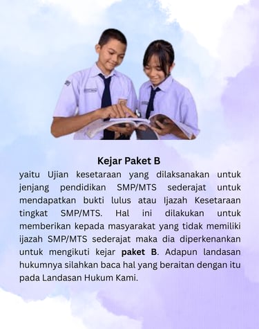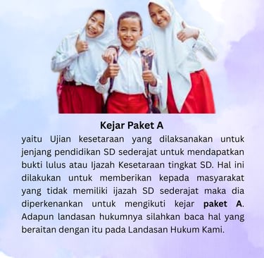 Program kejar paket A, B, dan C dengan metode belajar fleksibel dan dukungan penuh Terakreditasi B di kota Medan.